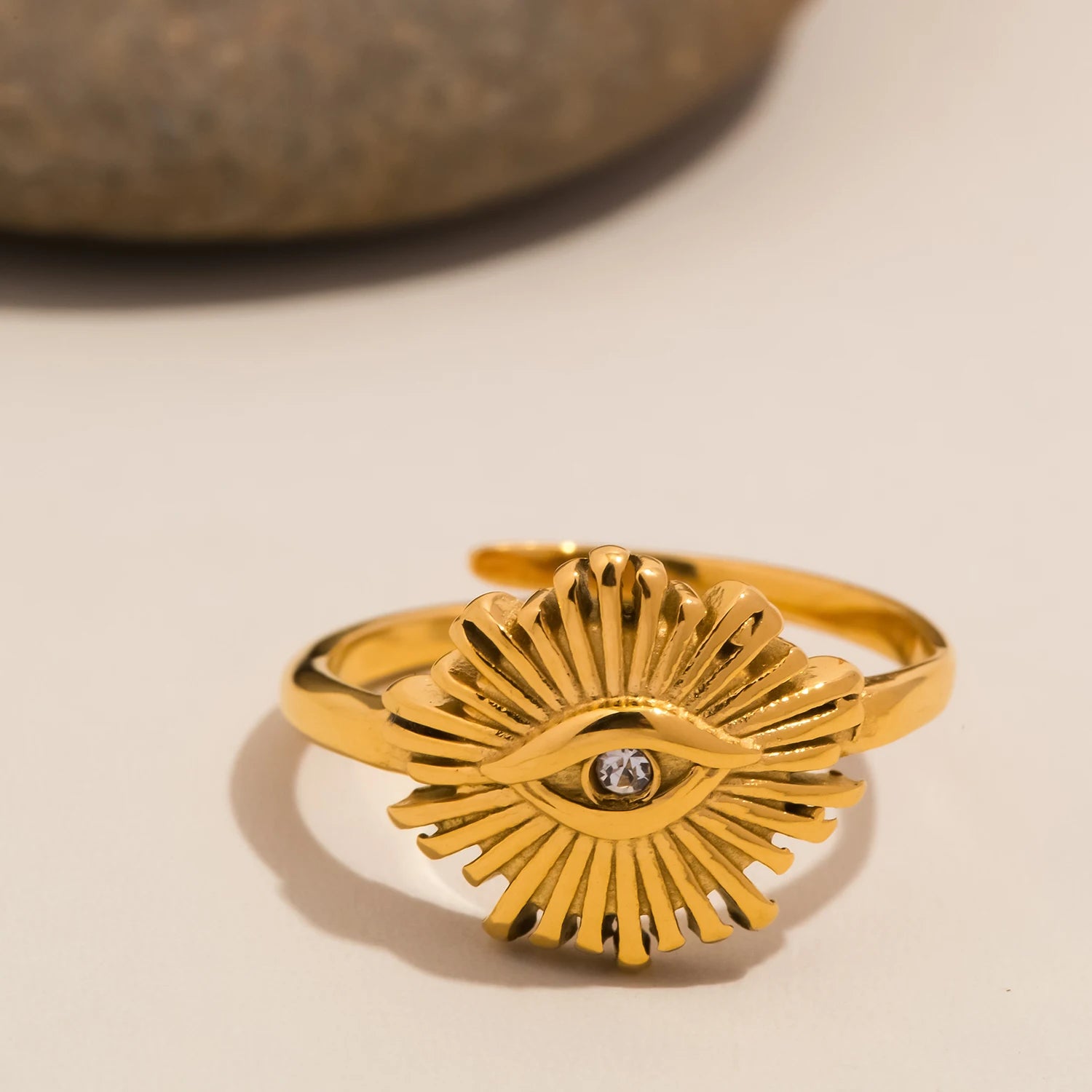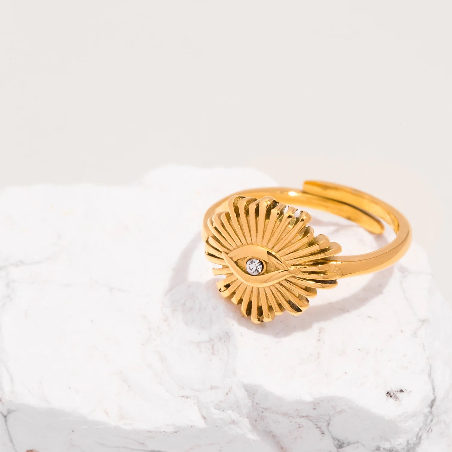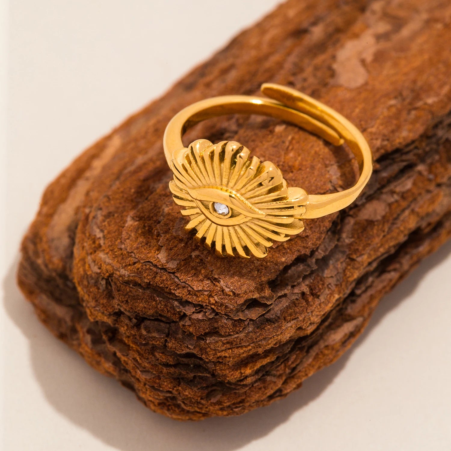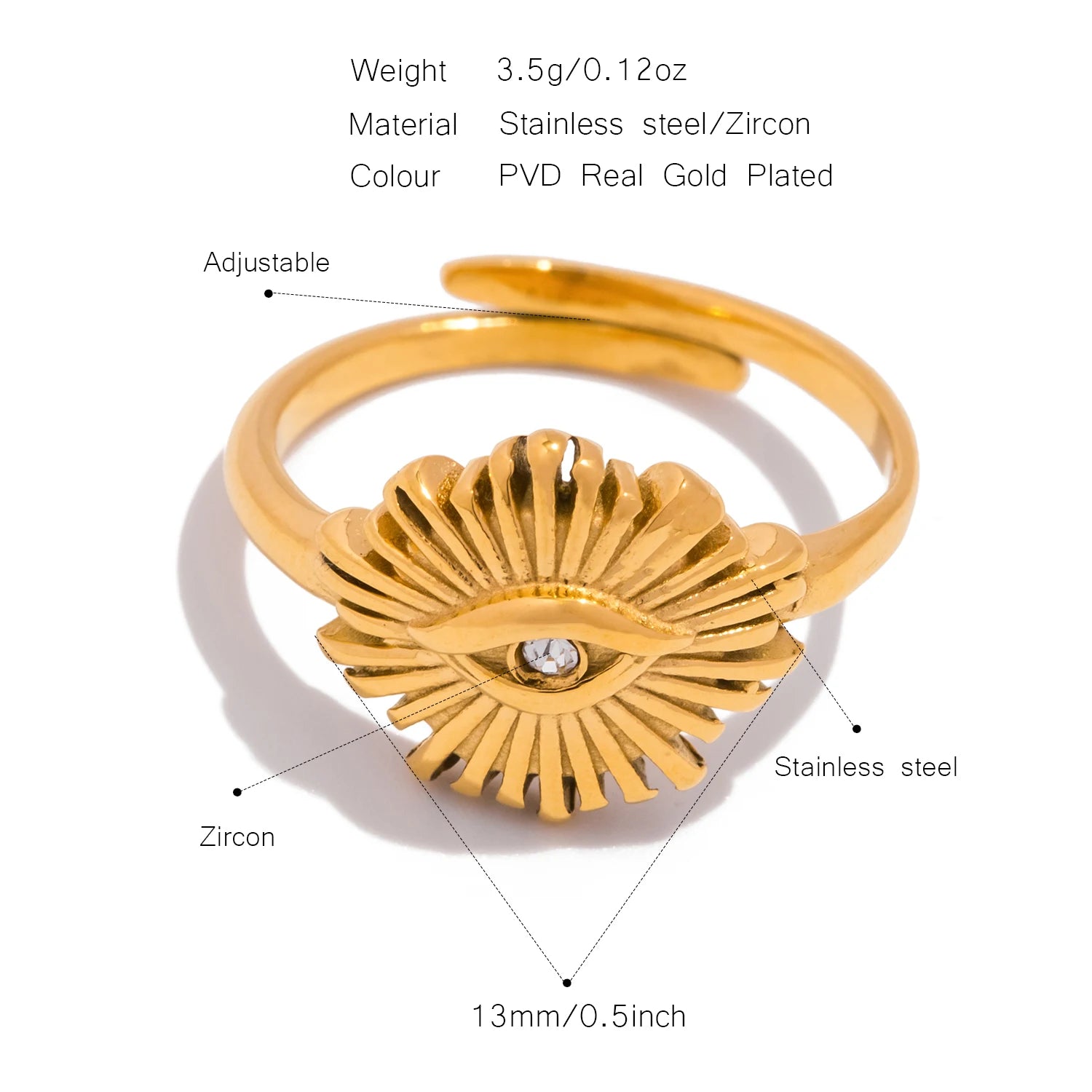 Adjustable Opening Stainless Steel Inlaid with Zircon Plated 18K Gold