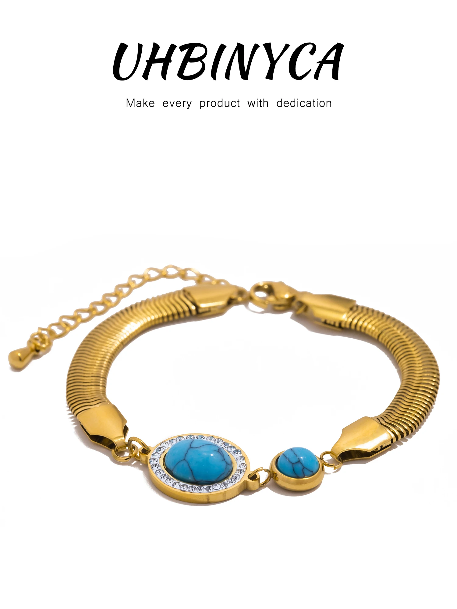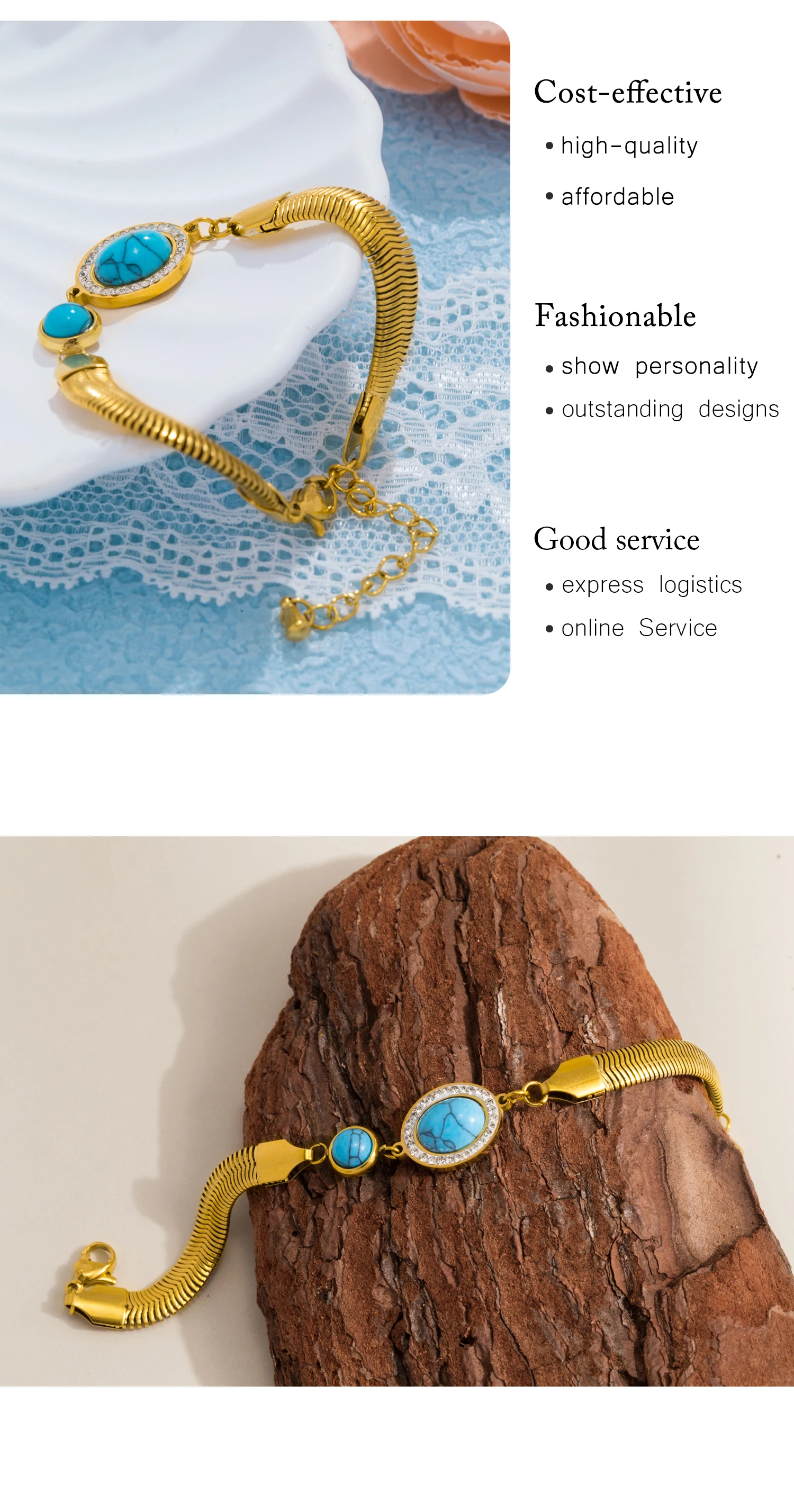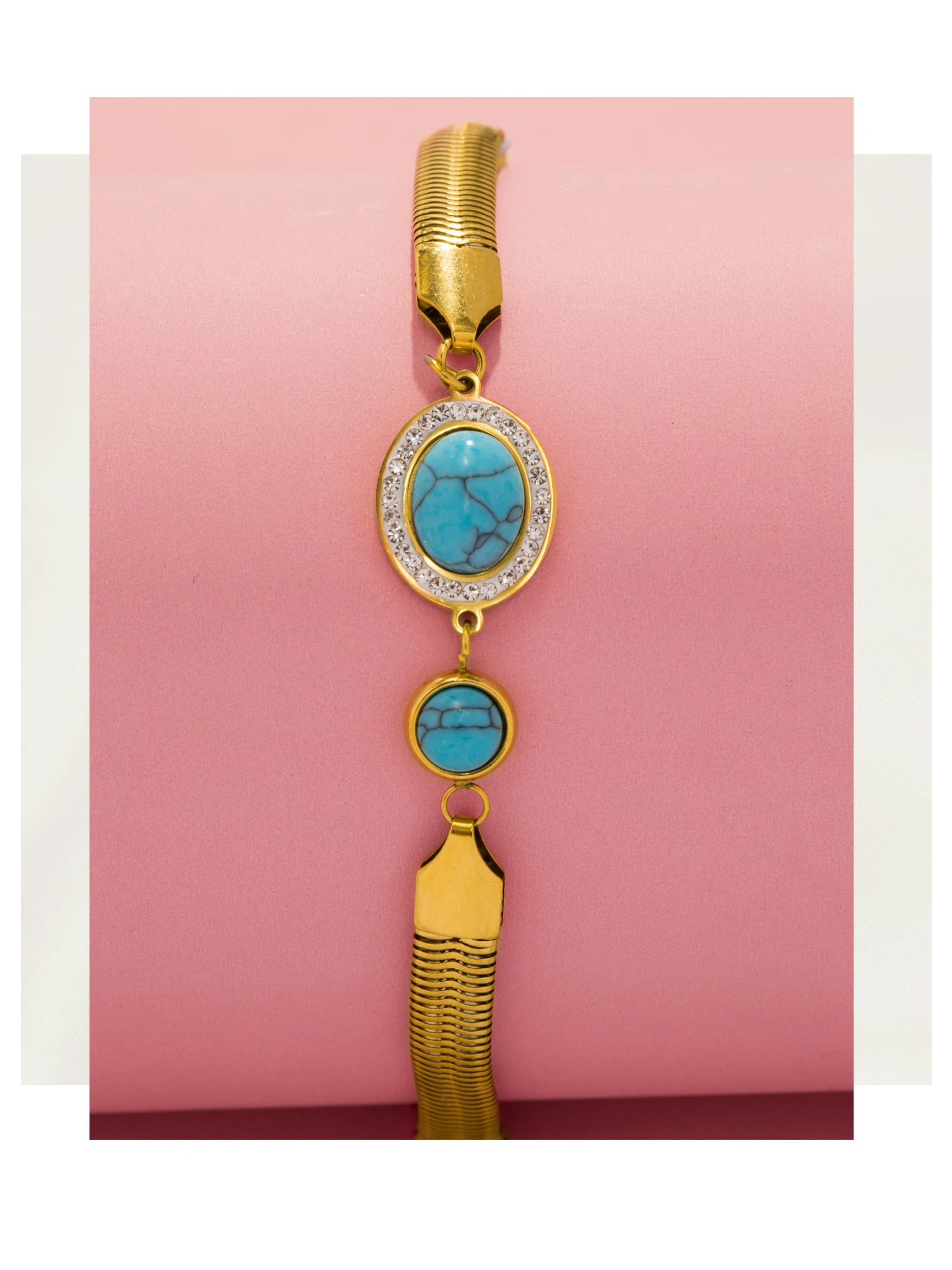 Turquoise CZ Bangle – Stainless Steel Snake Chain, Holiday Gift