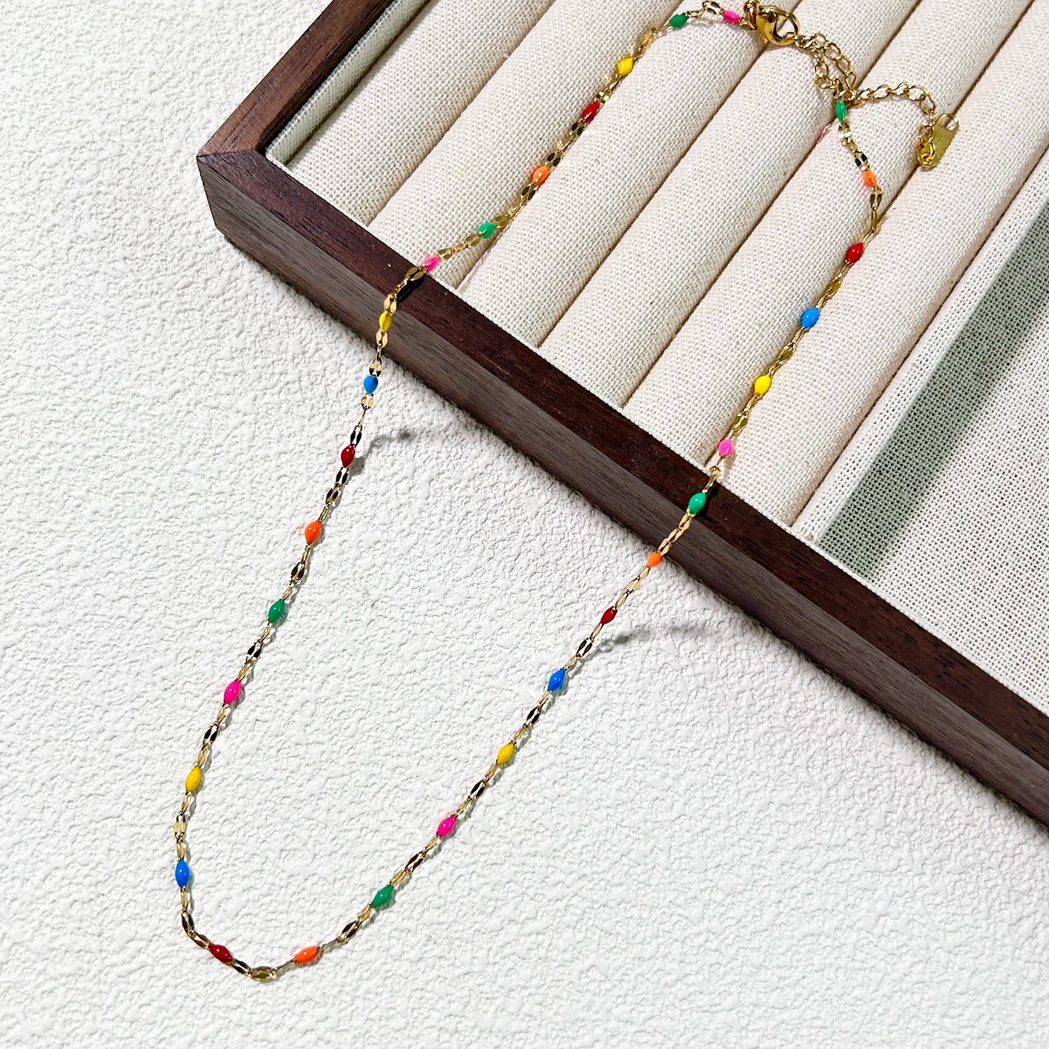 Vintage Enamel Beads Necklace 🌈 – 18K Gold PVD, Boho Style